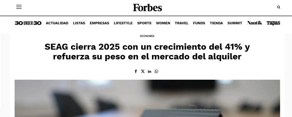 SEAG cierra 2025 con un crecimiento del 41% y refuerza su papel en el mercado del alquiler tras su aparición en Forbes